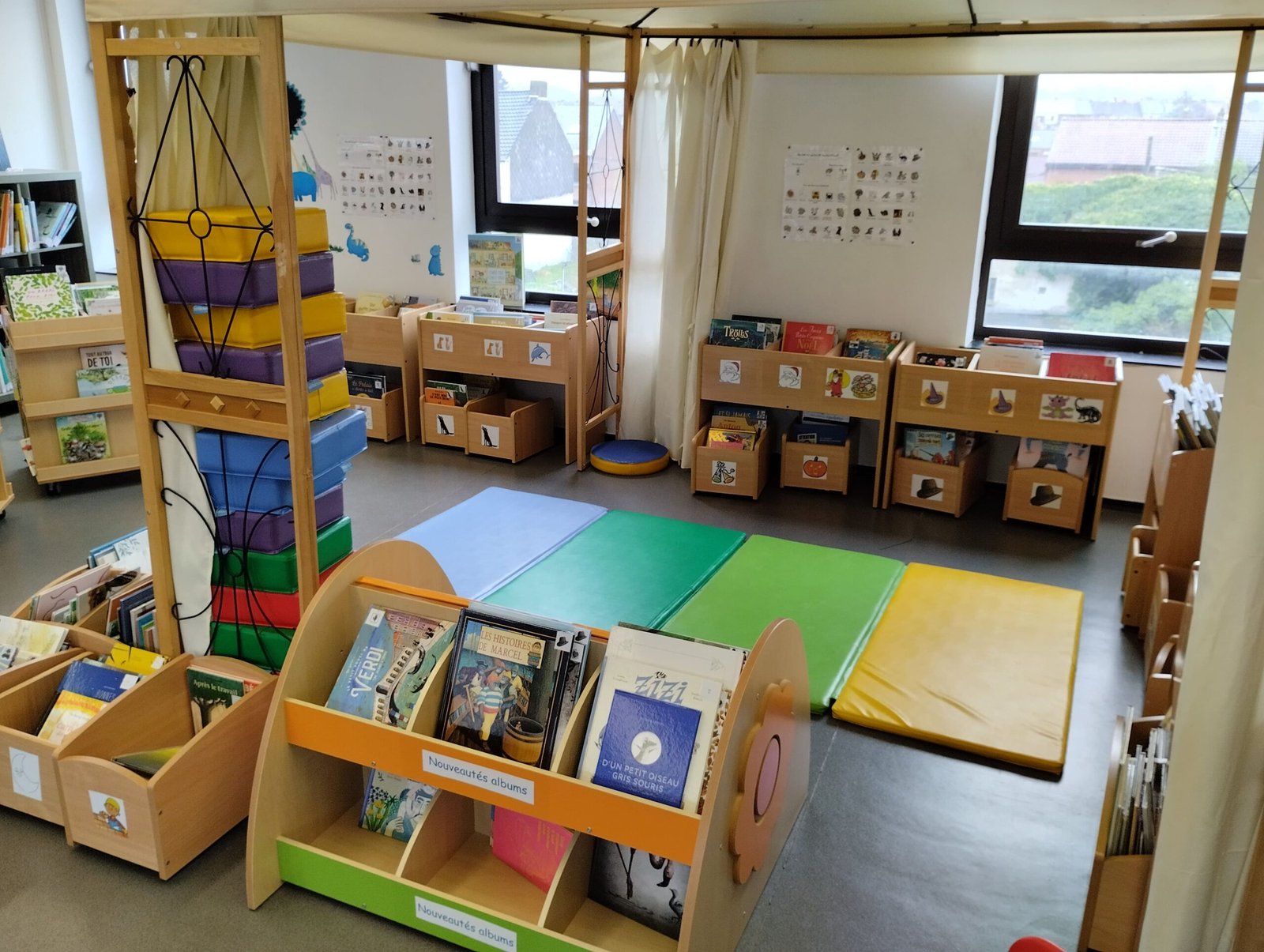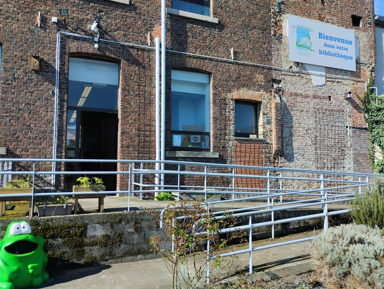 La bibliothèque de Quaregnon en quelques photos Entrée de la bibliothèque Entrée section adulte Section adultes, bureaux et EPN Comptoir de prêt Albums et tapis dans la section jeunesse Entrée section jeunesse Visite virtuelle Pour une exploration de la bibliothèque plus approfondie vous pouvez effectuer une visite virtuelle de la bibliothèque en cliquant sur ce texte ou sur l’image ci-dessous.Cette visite a photographiée début 2024, des modifications sont susceptibles d’avoir été apportées par la suite.